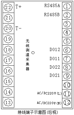 CH-ZXCW无线测温装置的背面共有2组接线端子,端子示意图如图3所示: